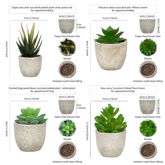 4er Set Mini-Kunstpflanzen